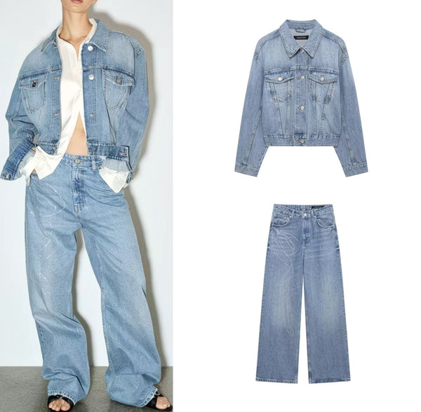 Ensemble Denim Clair – Veste Crop & Jean Wide Leg