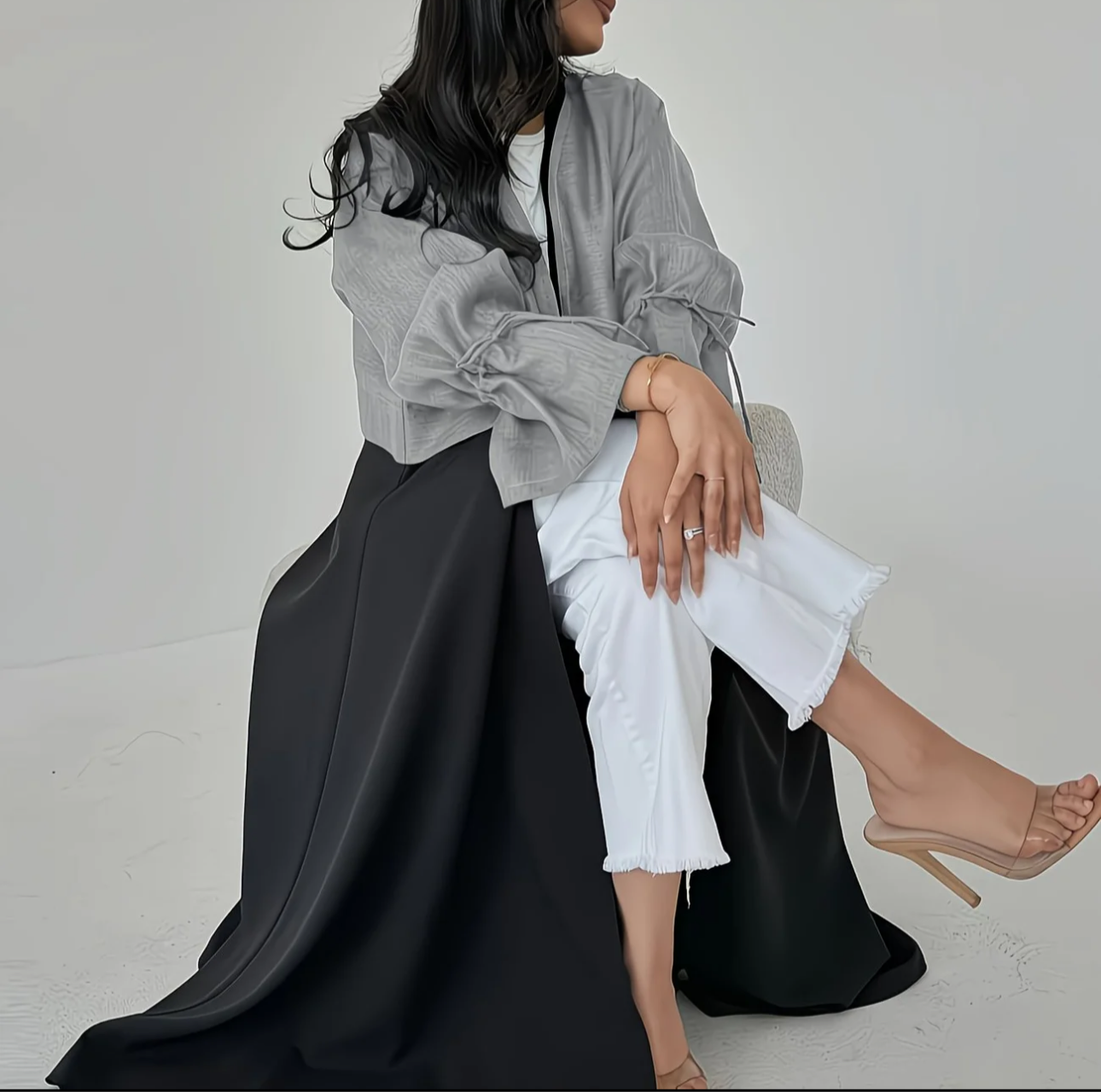 Abaya Mira — Élégance Structurée et Contraste Moderne