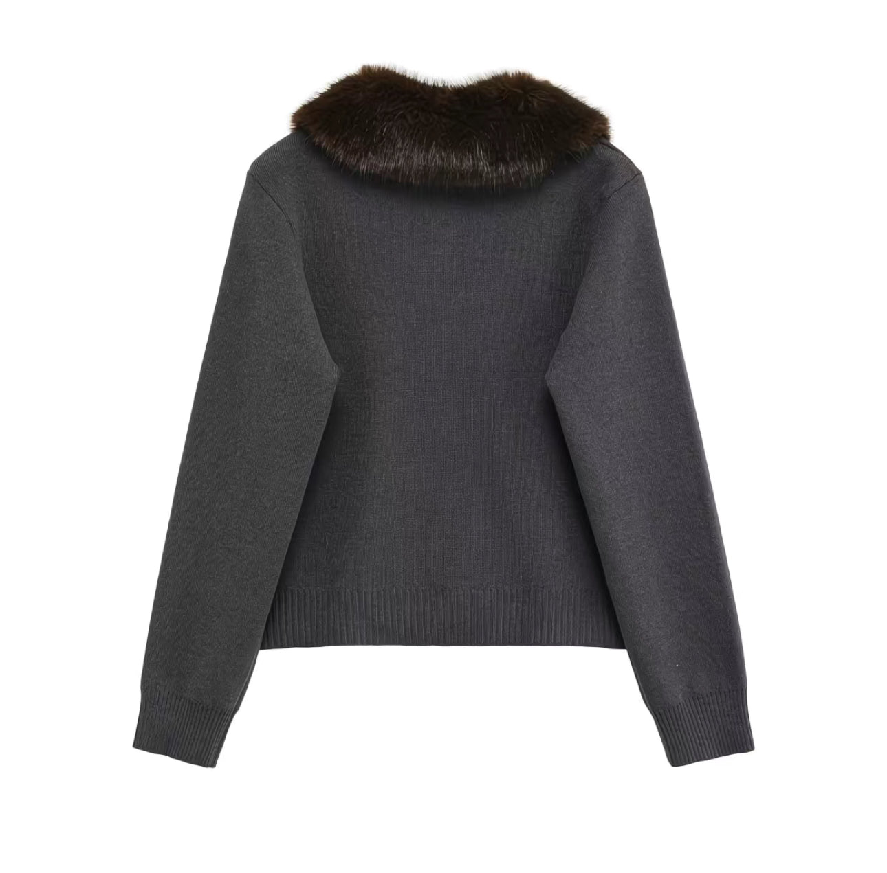 Cardigan Gris avec Col en Fausse Fourrure – Élégance Vintage